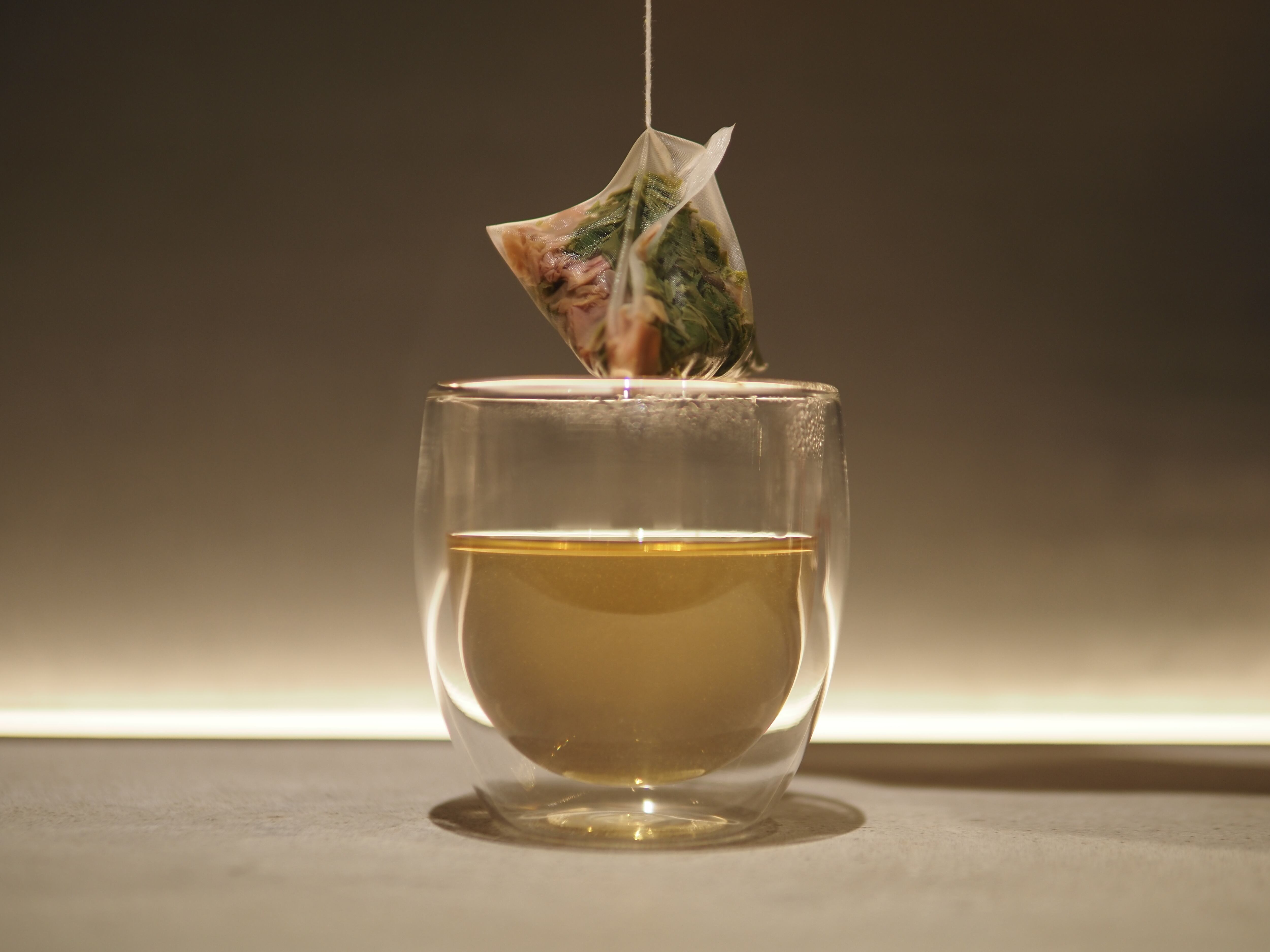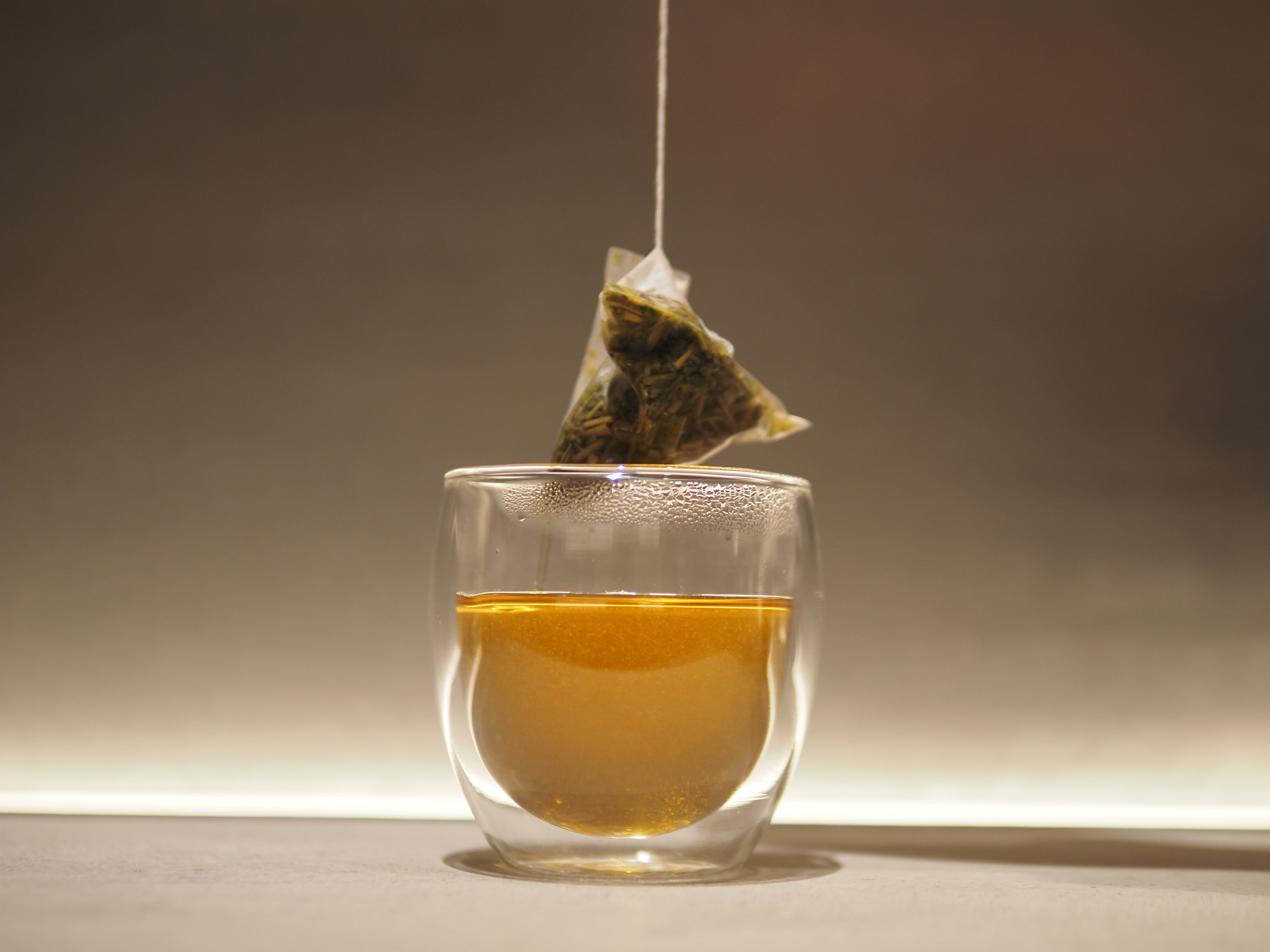 浅煎りほうじ茶にレモングラスとレモンバーベナを合わせた、リゾート感あふれるスロウのオリジナルティー