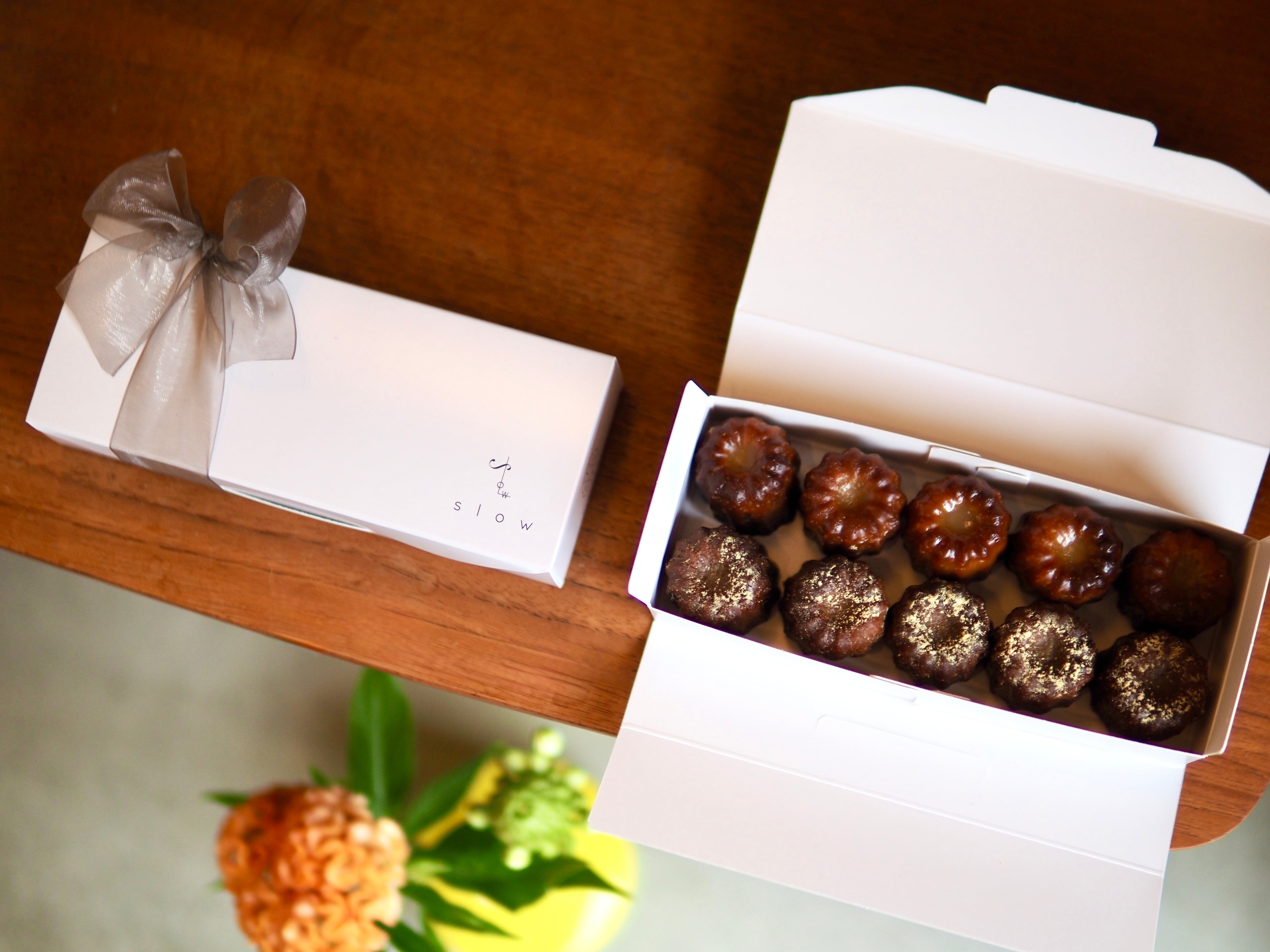 毎朝焼き上げるslowのスペシャリテ。このカヌレを求めて来店されるお客様も多いです。一口目はカリッと香ばしく、二口目はもちっとした食感がクセになり、ついつい手が伸びてしまいます。
